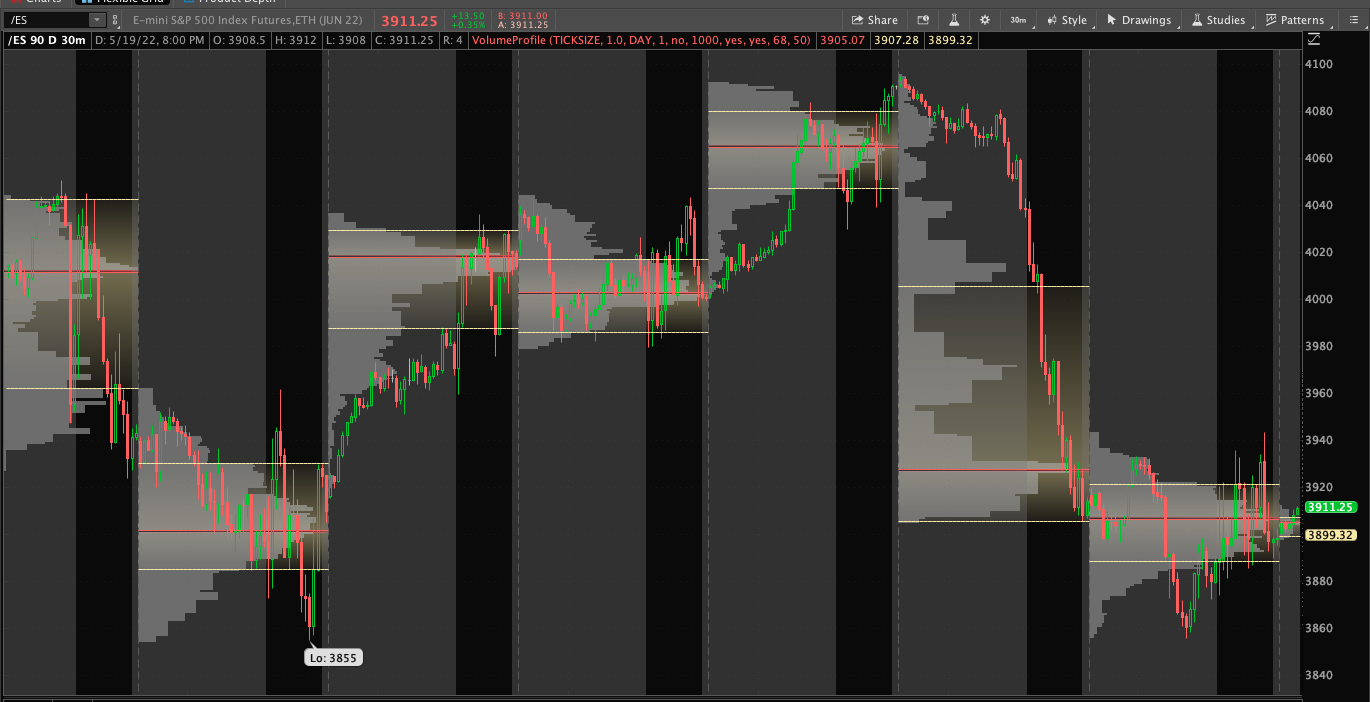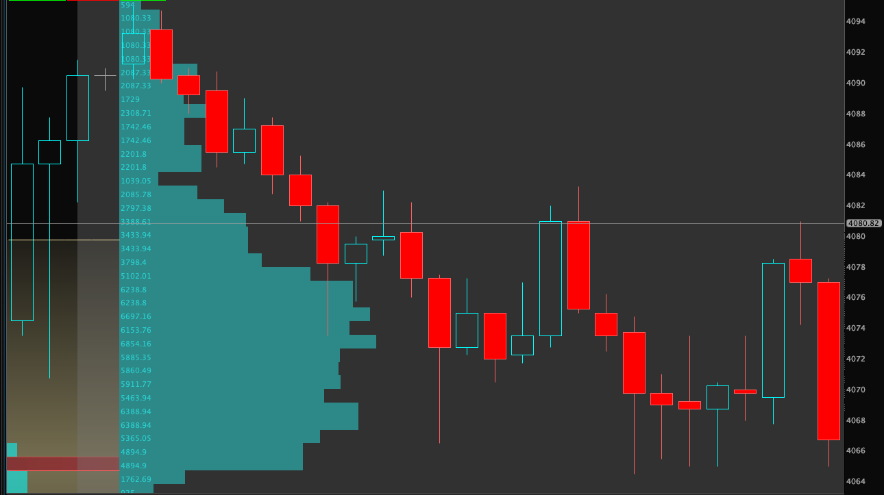 When you zoom all the way in on volume profile you can see the size of each node. These price levels are called nodes and measure the amount of contracts traded within a specific price point.
